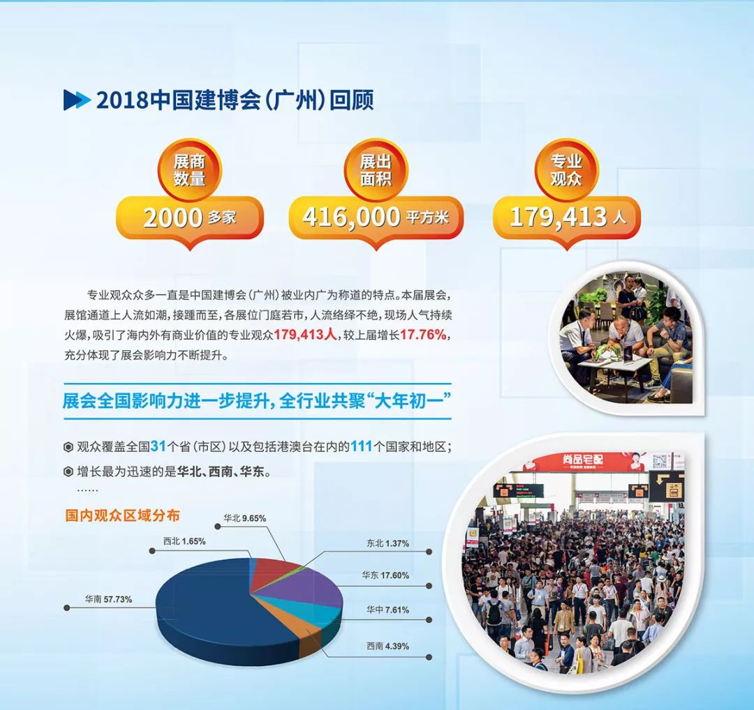 据悉,此次中国建博会展览面积超过40万平方米,规模居全球同类展会之首,共设立40个展馆,展商超过2100家,同期将举办逾40场高端会议论坛、行业活动,参观人数近18万人、超90万人次,展区涵盖大家居建装行业全产业链。