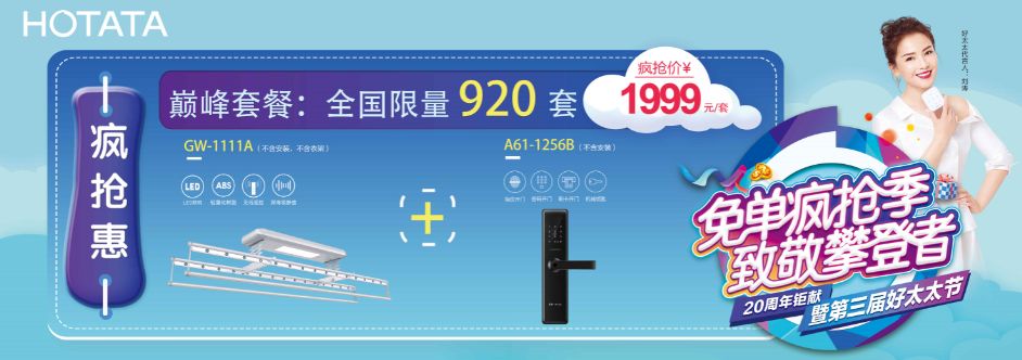 *疯抢惠:“必一运动晾衣机GW-1111A(不含安装,不含衣架) + 科徕尼智能锁A61-1256B(不含安装)”巅峰套餐,特价仅需1999元/套。