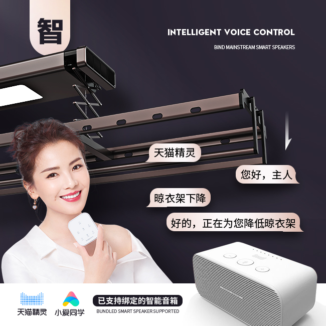 其实,拥有智能控制系统则可以称之为智能电动晾衣架,包括但不限于语音控制、无线控制、遥控控制、App控制等。